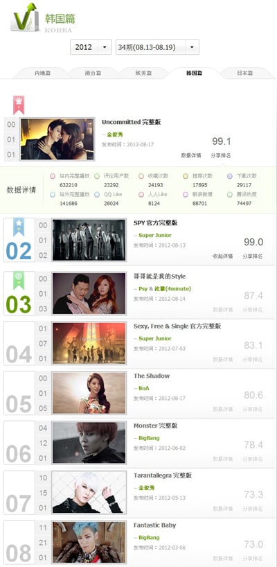 김준수가 지난 17일 발매한 영어 싱글 앨범 '언커미티드'(UNCOMMITTED)는 중국 최대 규모 뮤직비디오 사이트 인유에타이 차트에서 주간 1위를 차지했다.