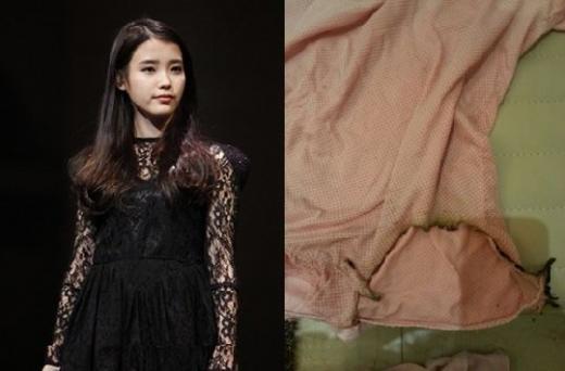 공개된 사진은 아이유의 분홍색 잠옷으로, 잠옷 밑에는 불에 검게 그을린 자국이 남아있어 팬들을 깜짝 놀라게 만들었다.