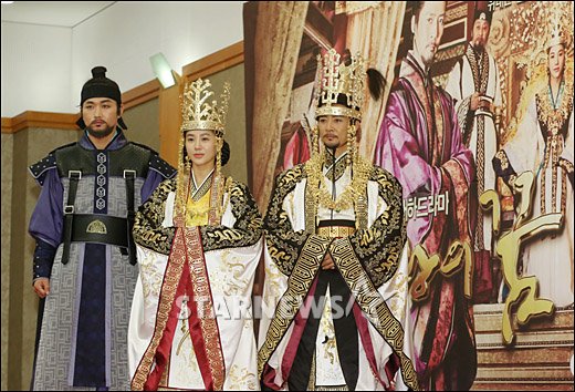배우 김유석, 박주미, 최수종(왼쪽부터)이 6일 오후 서울 마포구 한 호텔에서 열린 KBS1 대하드라마 '대왕의 꿈'(극본 유동윤 김선덕, 연출 신창석 김상휘) 제작발표회에 참석해 포즈를 취하고 있다.