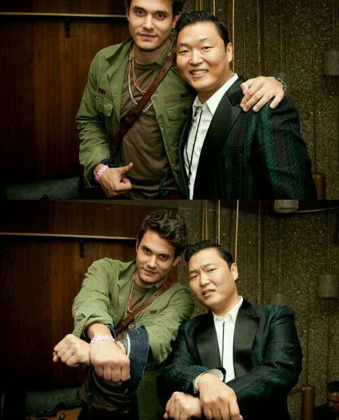 사진 속에는 싸이와 존메이어가 함께 카메라를 향해 곡 '강남스타일'을 대표하는 '말춤' 포즈를 취하고 있어 눈길을 끈다. 존 메이어는 미국 그래미상을 7번이나 수상한 인기가수다.