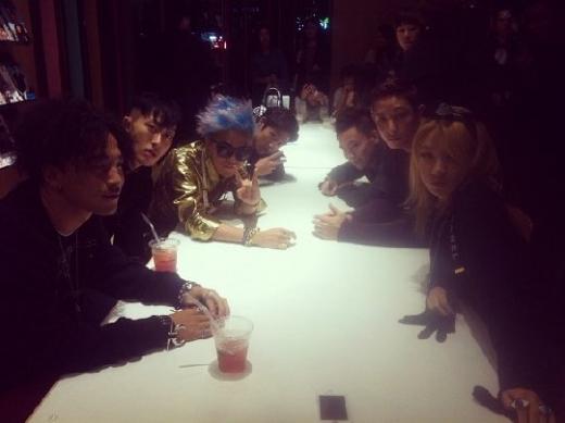 게재된 사진 속 지드래곤은 절친인 태양, 이혁수, 씨엘 등 지인들과 함께 긴 탁자에 줄지어 앉아 카메라를 향해 포즈를 취하고 있다. 특히 지드래곤의 파스텔 톤으로 그라데이션 염색 된 헤어스타일이 돋보여 눈길을 끌고 있다.