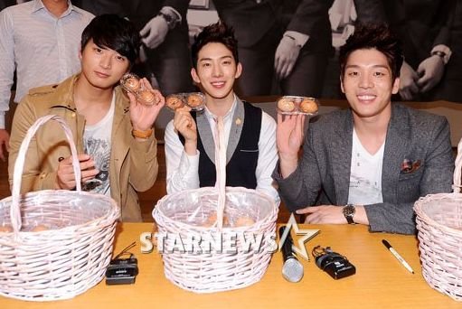 2AM은 이날 수험생들의 두뇌 활동에 좋은 달걀의 우수성을 알리고자 학생들에게 사인한 달걀을 선물하고 직접 인사를 나눴다.