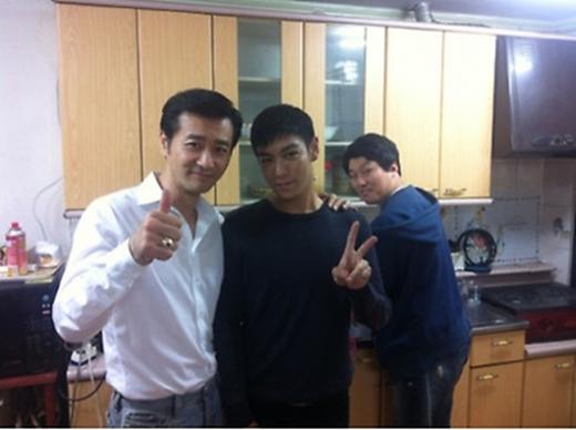 곽민석은 21일 오전 자신의 트위터에 "영화 '동창생'의 주연배우 탑 '최승현'군과 충무로 명품조연 '김민재'군과"라는 글과 함께 사진 한 장을 게재했다.