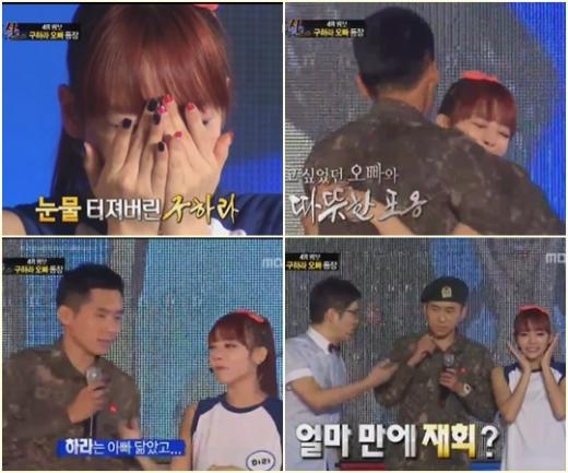 걸그룹 카라 구하라가 방송에서 군 복무 중인 친오빠와 재회해 기쁨과 감동의 눈물을 흘렸다.