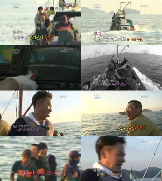 7일 오후 방송된 KBS 2TV '해피선데이-1박2일' 충남 서천 편에서는 30초짜리 눈치게임에서 진 엄태웅이 벌칙으로 전어잡이에 나서는 모습이 방송되었다.
