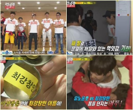 닭싸움에서 가장 먼저 진 지석진과 이광수팀이 탈락자와 합류해 수비팀이 됐다. 끝까지 살아남은 문근영 김종국팀과 하하 최강창민팀이 공격팀이 돼, 헬기, 수륙양용보트, 3천 톤급 군함 등 인천의 육해공을 가르는 스펙터클 레이스에 돌입했다.