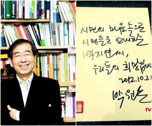 박원순 서울시장이 케이블 채널 tvN 토크쇼 '백지연의 피플 인사이드'에 출연했다.
