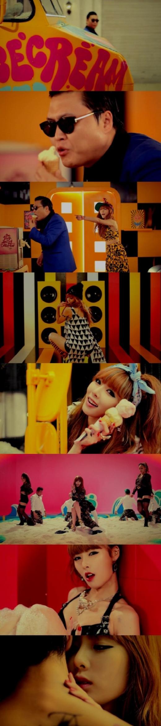 '아이스크림'의 뮤직비디오는 국제가수 싸이의 카메오 등장으로 시작한다.