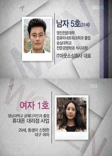 배씨는 케이블채널 tvN '화성인 바이러스'에서 이른바 '성형남'으로 출연해 "성형을 하는 데 6000만 원을 들였다"고 고백한 바 있다. 또한 김씨는 '짝' 출연 당시 배우 이하늬를 닮은 외모의 '어장관리녀'로 화제를 모았다.