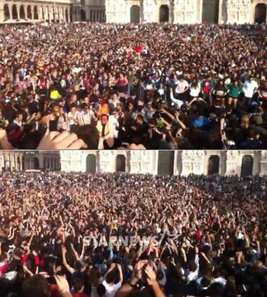 지난 21일(이하 현지시간) 유튜브에는 '강남 스타일 플래시몹 밀라노'라는 제목으로 이탈리아 밀라노의 한 광장을 가득 채운 사람들의 모습이 담긴 영상이 게재됐다.