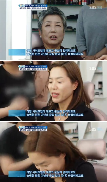 이어 이를 듣고 있던 시어머니가 "지선이를 보니깐 아담사이즈인데 예쁘고 군살이 없더라"며 "늘씬한 편은 아닌데 군살 없이 쪽 빠졌다"며 당시 상황을 솔직하게 말해 김지선을 당황하게 했다.