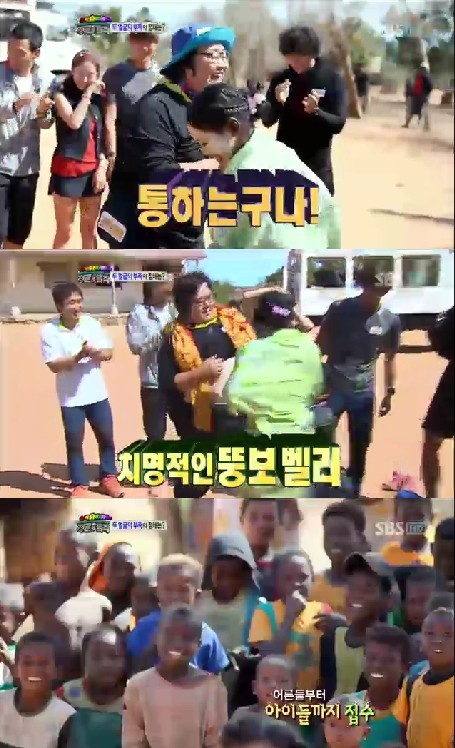 이날 사칼라바족의 환대를 받으며 마을에 도착한 '병만족' 멤버들은 부족민들과 함께 춤을 선보였고, 류담은 뱃살을 드러낸 벨리 댄스를 선보여 부족민들의 웃음을 자아냈다.