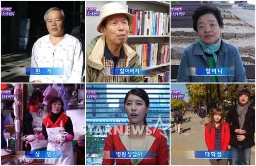 관계자는 "각층에서 열심히 사는 시민들의 목소리를 한데 모은다는 취지에 따라 한 사람당 3초 정도의 시간을 할애해서 15명의 인터뷰를 담았다"며 "그 사람들이 국민으로서 무슨일을 하는지에 포커스를 맞췄다"고 말했다.