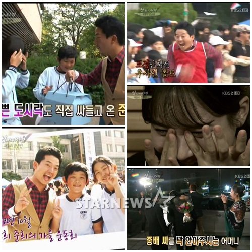 사실 이 같은 사연은 운동회가 진행된 지난 10월 이미 알려지며 화제를 모았다. 이날 방송을 통해 감동은 배가 됐다. 김준호는 환희와 준희를 위해 도시락을 준비했다. 여기까지는 예상 가능한 시나리오다. 김준호는 환희의 절친한 친구들과 함께 대화를 나누며 '삼촌' 그 이상의 존재감을 드러냈다. 뿐 아니라 준희의 담임선생님과도 학부모의 입장에서 진지한 대화를 나눴다. 학부모 릴레이 달리기에서는 사력을 다해 뛰는 모습이었다.