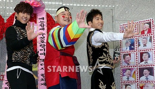 한편 강호동은 이날 '무릎팍도사'을 함께 진행해 온 '건방진 도사' 유세윤, 새롭게 '강호동의 남자'로 합류한 제국의아이들(문준영 시완 케빈 광희 김태헌 정희철 하민우 박형식 김동준) 멤버 광희와 함께 포토월 앞에 서 포즈를 취했다.