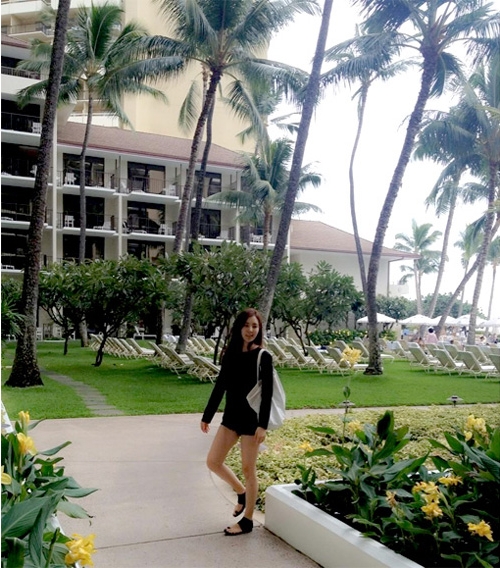 공개된 사진 속 한채아는 하와이의 한 리조트 앞에서 카메라를 향해 포즈를 취하고 있는 모습이다. 특히 그는 플랫 슈즈를 신었음에도 검은색 핫팬츠로 우월한 각선미를 과시해 눈길을 끌었다.