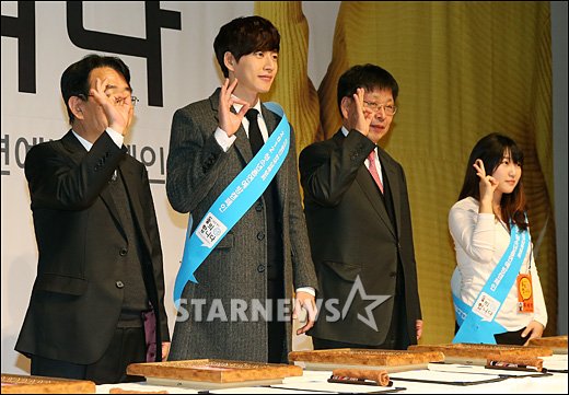 배우 박해진이 3일 오후 서울 광화문 KT 올레스퀘어에서 열린 2012 청소년흡연예방캠페인 '신분증 확인, 동의합니다'의 홍보대사로 위촉, 한국담배협회 임영묵 사무총장, 서포터즈 대표 등과 핸드프린팅을 하고 있다.