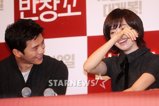 배우 고수와 배우 한효주가(왼쪽부터) 3일 오후 서울 왕십리 CGV에서 열린 영화 '반창꼬' 언론시사회에 참석하고 있다.