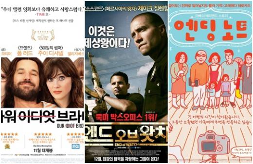 대작들 사이에서 대대적인 홍보 없이도 관객들의 반응을 이끌어내고 있는 영화들이 있다. 유쾌한 바보가 한 가족의 일생을 바꾸는 영화 '아워 이디엇 브라더', 독특한 형식의 액션영화 '엔드 오브 왓치', 말기암 환자의 소소한 버킷 리스트 '엔딩노트' 등 개성 있는 외화들에 관객들의 마음이 움직이고 있다.