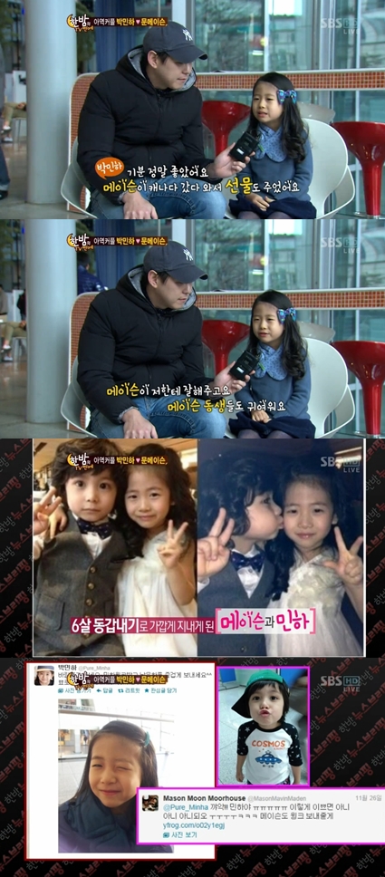 이에 박민하의 아버지 박찬민 아나운서는 "촬영도 여러 번 하고 집에도 몇 번 왔다 갔다 해서 두 아이들이 친하게 지내고 있다"고 말했다.