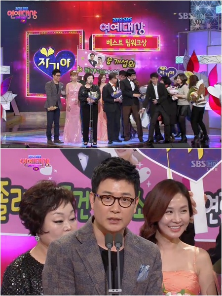 '자기야'는 30일 오후 8시45분 서울 마포구 상암동 SBS프리즘타워에서 생방송으로 진행된 2012 SBS 연예대상 시상식에서 베스트 팀워크상 트로피를 안았다.