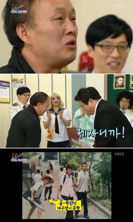 이어 담임선생님은 꽃을 들고 깜짝 등장해 김준현을 놀라게 했고, 그는 "내가 알고 있는 제자인 줄 몰랐다. 요번에 해피투게더 연락을 받고 알았다"라며 김준현의 홀쭉했던 고등학교 사진을 공개해 모두를 놀라게 했다.