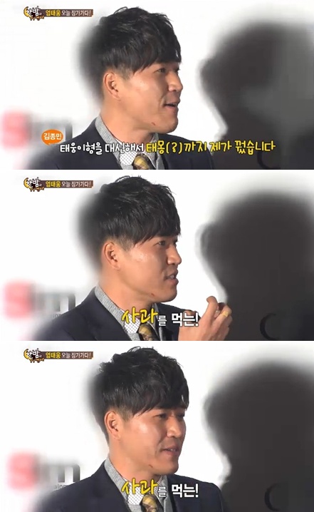 가수 김종민이 엄태웅을 대신해 태몽을 꿨다고 밝혔다.