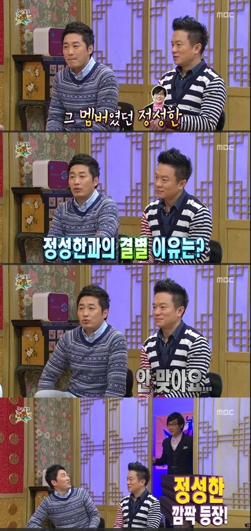 한편 이날 방송에서 정찬우와 김태균이 답변을 한 뒤 정성한이 스튜디오에 깜짝 등장해 출연진들을 모두 놀라게 했다.