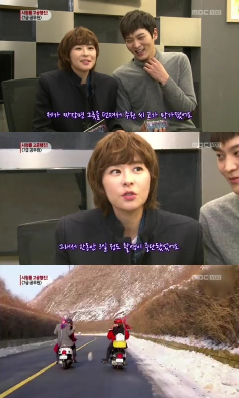 최강희와 주원은 4일 오전 방송된 MBC '기분 좋은 날'에 출연해 최근 인기리에 방영중인 MBC 수목드라마 '7급 공무원'의 촬영 비하인드 스토리를 전했다.