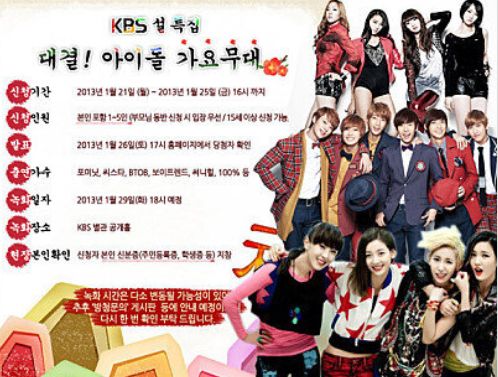 포미닛(남지현 허가윤 전지윤 김현아 권소현), 미쓰에이(민 페이 지아 수지), 보이프렌드(동현 영민 광민 민우 현성 정민) 등 아이돌 11팀이 참가한다.