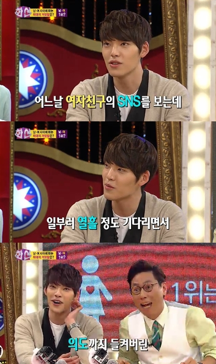 '화신' 배우 김우빈이 여자친구의 전 남자친구 사진을 보고 상처를 받았던 과거를 고백했다.