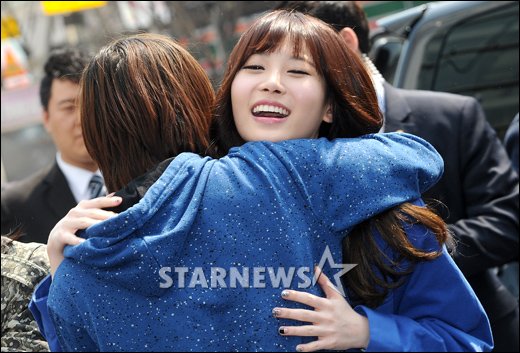 그룹 걸스데이 유라가 3일 오후 서울 중구 명동거리에서 프리허그 이벤트를 열고 팬들과 포옹을 하고 있다.