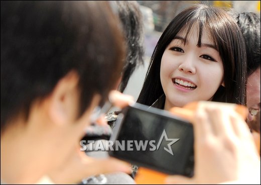 그룹 걸스데이 민아가 3일 오후 서울 중구 명동거리에서 프리허그 이벤트를 열고 팬들과 포옹하고 있다.