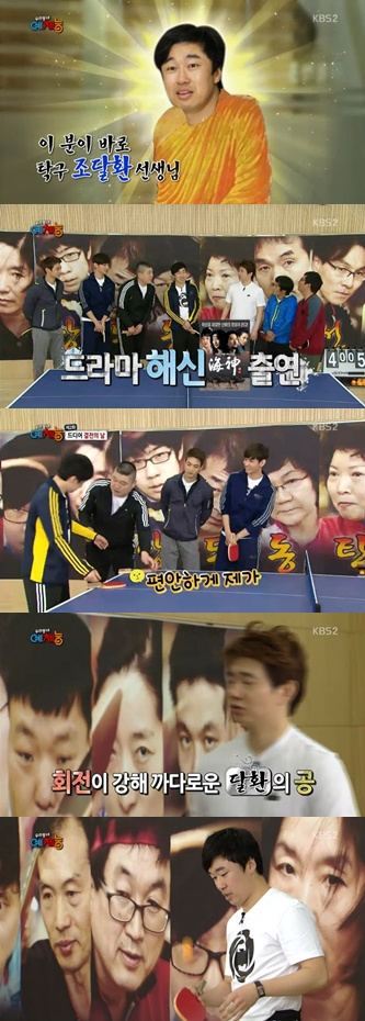 까치집 머리에 편한 트레이닝복을 입은 조달환은 개그맨 박성호와의 대결에서 이기며 출연진 등을 놀라게 했다. 특이한 탁구 묘기 등도 선보여 눈길을 끌었다.