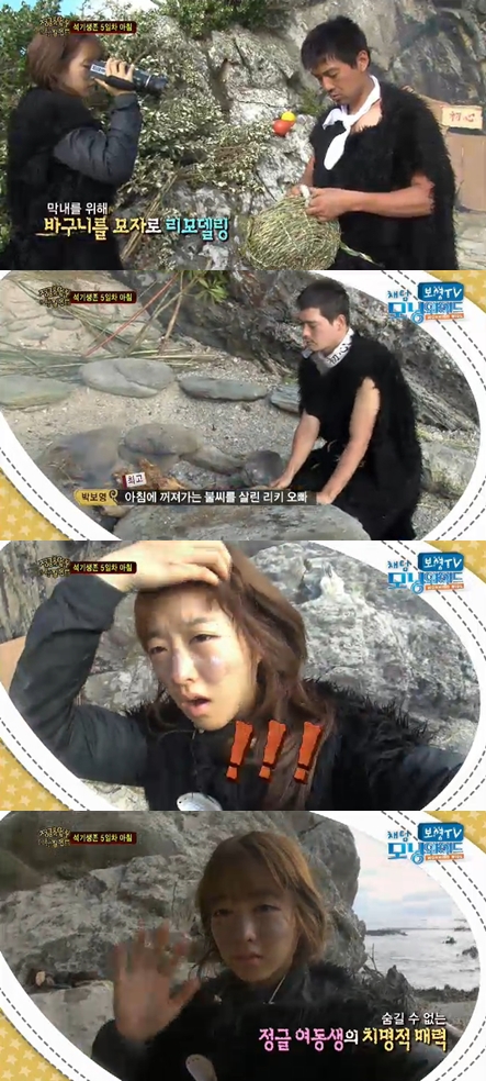 박보영은 12일 오후 방송된 SBS '정글의 법칙 in 뉴질랜드'에서 카메라를 들고 직접 촬영을 하다 꼬질꼬질한 자신의 모습을 보고 "거지다"고 평했다.