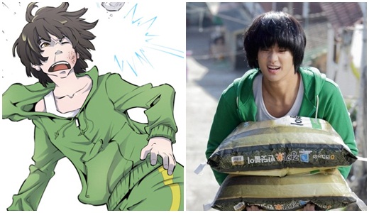 주인공 동구를 연기한 김수현은 최고의 싱크로율을 보여준다. 앞서 공개된 예고편에서도 초록색 트레이닝복에 덥수룩한 머리, 바보 같은 미소로 웹툰 속 동구의 모습을 완벽 재현한 김수현은 티저포스터와 스틸컷에서도 몸짓 하나까지 동구와 똑 닮은 모습을 연출했다.