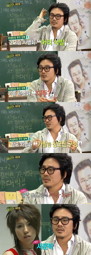 '학교짱'으로 이름을 날렸던 김인권은 "어머니가 돌아가신 후 학생회장을 하기 위해 선생님께 부탁을 드렸었다"라고 말했다.