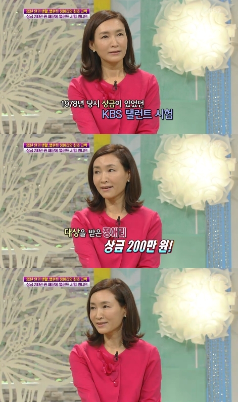 여배우 정애리가 상금을 위해 연예인이 되었다고 밝혔다.