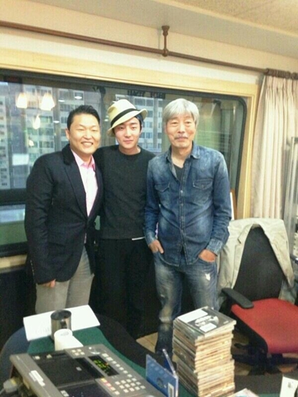 공개된 사진은 MBC FM4U '배철수의 음악캠프'에 출연한 로이킴이 이날 방송에 함께 참여한 배철수, 싸이와 함께한 사진으로, 사진 속 로이킴은 싸이와 배철수 사이에서 긴장한 듯 어색한 미소를 선보이고 있다.