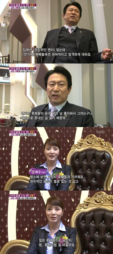 이어 김응수는 "후배들도 애정으로 혼내는 것을 알기 때문에 연기적인 부분에 있어서는 상당히 엄격하고 권위적인 면이 있다"고 덧붙였다.