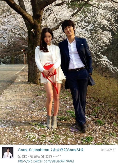 배우 송승헌이 신세경과 벚꽃놀이 사진을 공개했다.