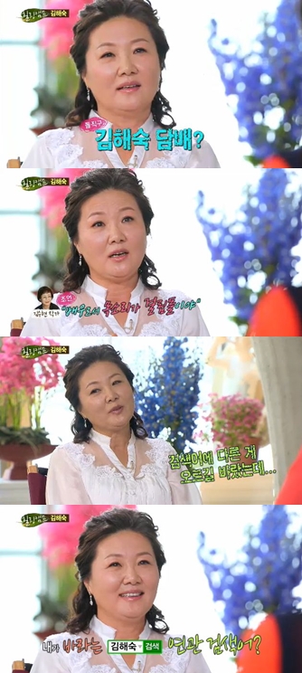 MC 이경규는 "연관검색어에 담배가 같이 뜬다. 어떻게 된 거냐"고 묻자, 김해숙은 "아, 정말 그 얘기만 하면 정말"이라며 말문을 열었다.