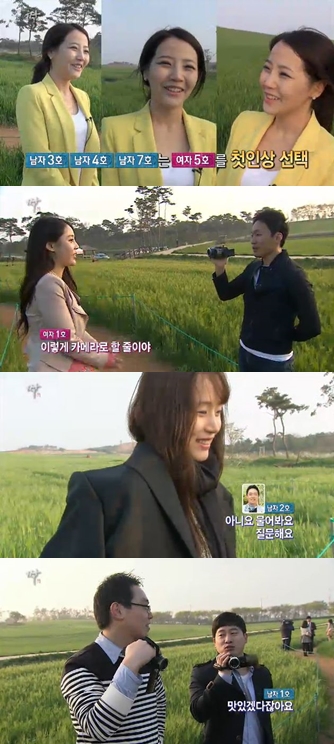 이날 남자들은 첫인상이 마음에 드는 여자를 카메라를 담았다. 먼저 남자 3, 4, 7호가 여자 5호를 택하자 여자 5호는 수많은 카메라에 어쩔 줄 몰라 했다.