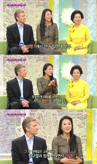 미국인인 남편과의 첫 만남을 묻는 질문에 최연제는 "나는 비행기 안에서 처음 만났다. 그런데 케빈은 비행기 타기 전 공항 카운터에서 날 처음 봤다더라. 말을 걸고 싶었지만 운명이라면 같은 비행기를 탈 것이라는 생각에 말을 걸지 않았다고 하더라"고 답했다.
