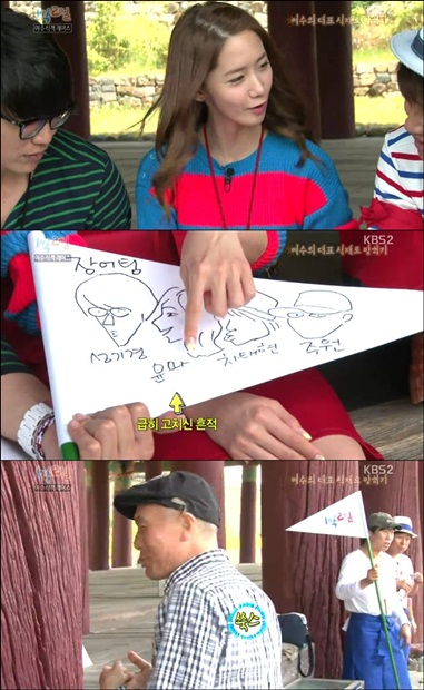 이날 대결을 앞두고 허 화백은 각 팀의 깃발에 팀원들의 캐리커처를 그려 선물했다. 성시경, 차태현, 주원과 장어팀이 된 윤아는 허 화백의 선물에 감탄을 금치 못하다 자신의 이름을 틀린 것을 알고 잠시 실망하는 표정을 짓기도 했다.