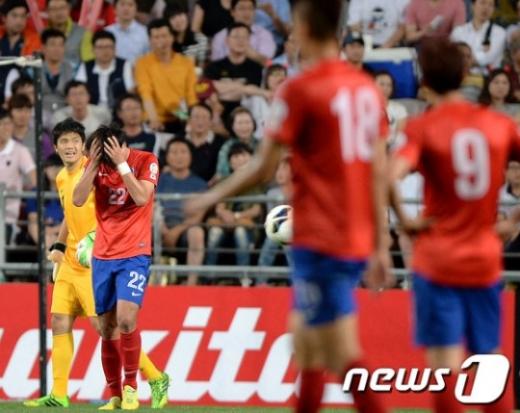 한국은 후반 31분 오른쪽 프리킥에서 올라온 공을 김영권이 슈팅으로 연결했으나 키퍼를 맞고 나왔다. 이어 장현수가 재차 슈팅을 때렸으나 또 다시 키퍼를 맞고 나갔다. 후반 40분 김보경의 프리킥에 이은 김영권의 헤딩 슈팅이 골문을 벗어났다. 후반 추가시간에는 김치우의 짧은 크로스에 이어 이근호가 헤딩을 시도했으나 골대를 살짝 빗나갔다.