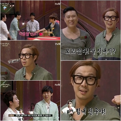 이날 방송에서 홍진호는 자신의 절친으로 전 프로게이머 이윤열을 데리고 왔고 인피니트 성규는 “이윤열 선수. 저희 누나가 진짜 팬이었다”며 달려가 악수를 청했다.