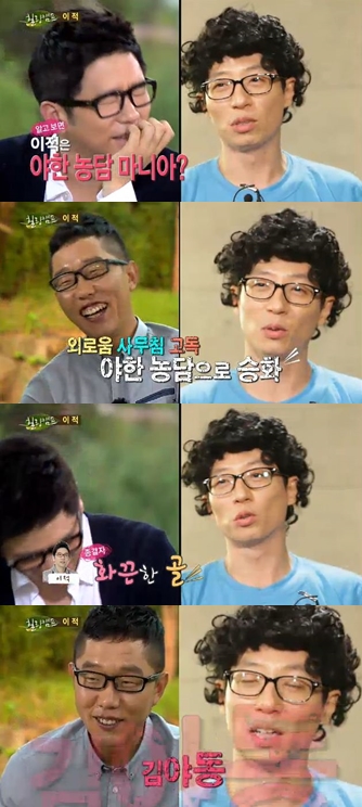 "김제동씨는 '김야동'으로 불린다"고 전한 유재석은 "이적씨는 지적인 야한농담 제조기고 아주 기가 막힌 친구다"고 말했다.