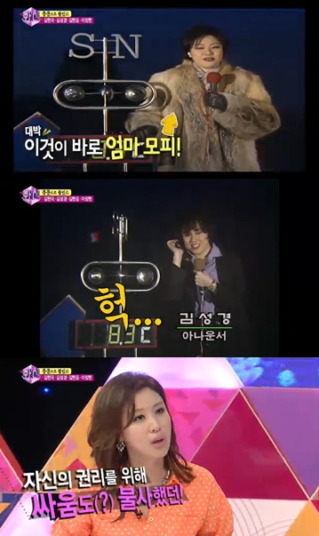 방송인 김성경이 어머니의 모피코트를 입고 날씨 예보를 전했었다고 밝혔다.