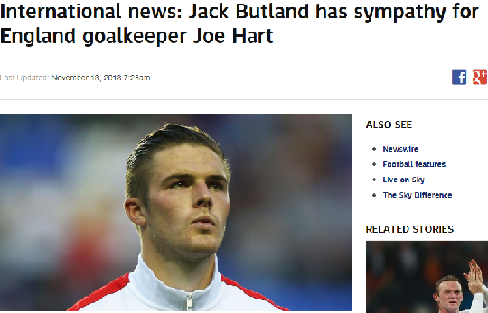이에 대해 잭 버틀랜드는 최근 잇다른 실수와 부진으로 인해 대표팀 명단 포함이 불확실했던 조 하트가 로이 호지슨 잉글랜드 감독에게 신뢰에 힘입어 명단에 포함되자 이에 대해 긍정적으로 생각하고 있다고 밝혔다.